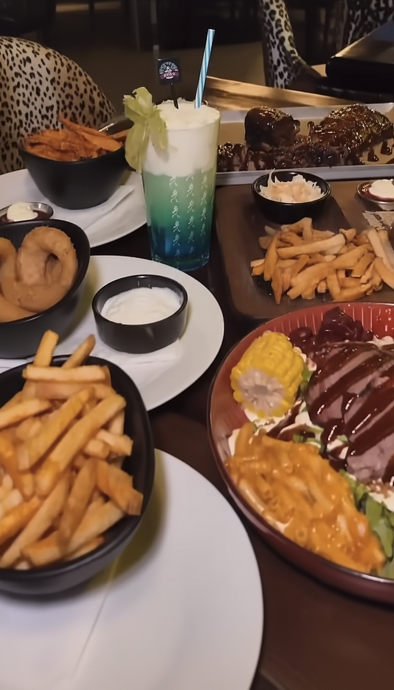 Pastrami vom Smoker, Mac’n’Cheese, Maiskolben, Kidneybohnen, Kirschtomaten, Guacamole, Nachos, Salat, geröstete Zwiebeln und Ranch Dressing.