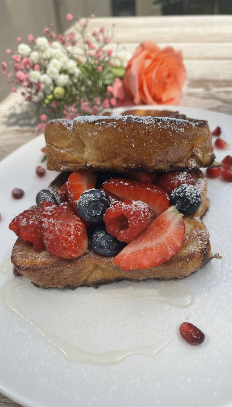 Im gemütlichen Ambiente des Inna’s Café erwartet dich ein süßer Genussmoment mit liebevoll zubereitetem French Toast. Das Frenchie Special wird mit frischen Früchten, karamellisierter Banane, Nutella und Ahornsirup serviert und durch eine knusprige Eiswaffel mit Mascarpone-Frischkäsefüllung perfekt ergänzt. In Kombination mit Matcha oder einem Getränk deiner Wahl entsteht ein besonderer Brunch- oder Dessertmoment, der Genuss, Kreativität und entspannte Café-Atmosphäre in Moers vereint.