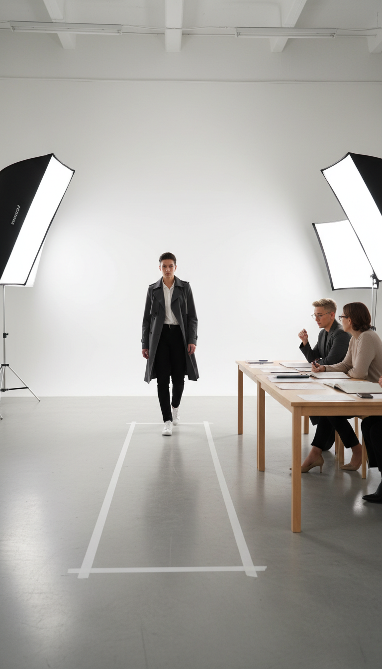 Inhalt: Vorlaufen auf dem Laufsteg, Maße und Haltung, Fotogenitätscheck und anschließende Bewertung durch die Modelagentur.