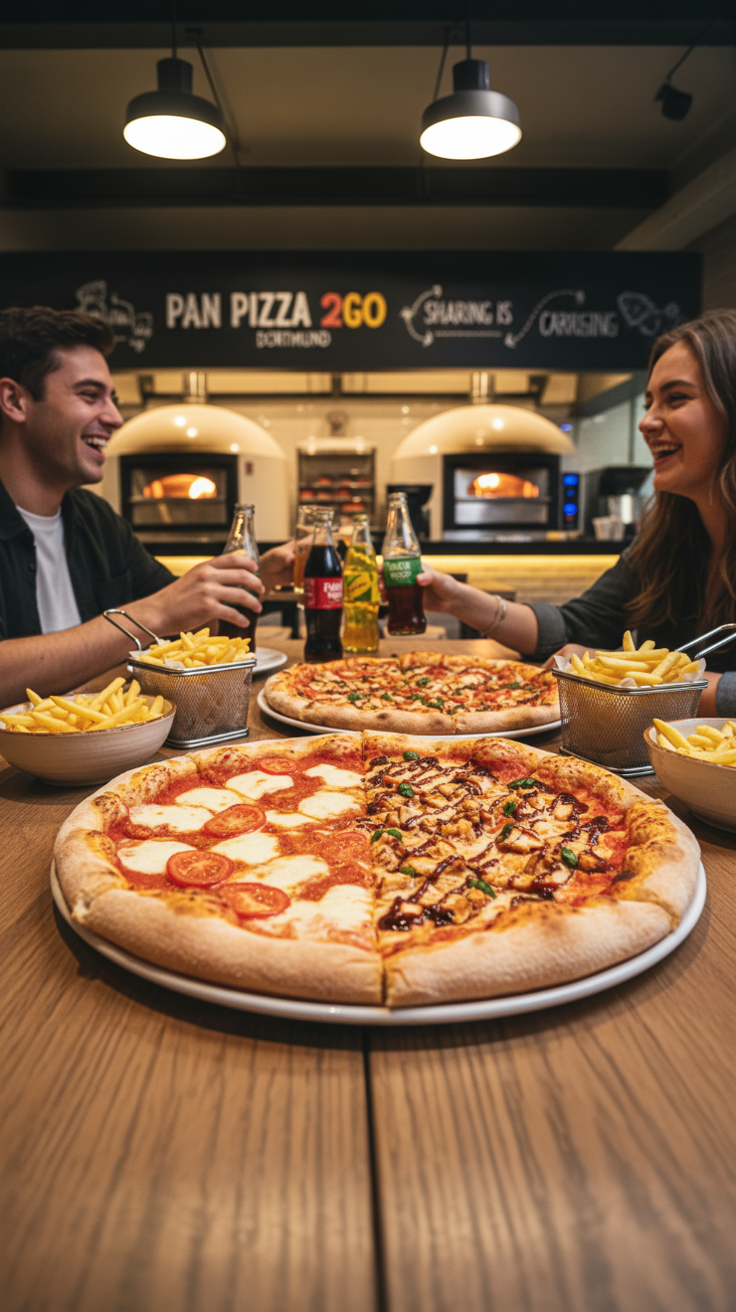 Genieße gemeinsam mit Freunden oder Familie leckere Pan Pizza in der Größe M oder L, perfekt zusammengestellt im praktischen Menü. Pan Pizza 2GO in Dortmund bietet dir frische Zutaten und entspannte Atmosphäre – ideal zum Teilen und Sparen.