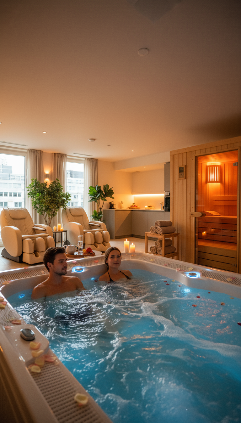 Genieße exklusiv zu zweit drei Stunden in einer privaten Wellnesslounge mit Whirlpool, finnischer Pärchensauna, Massagesesseln und Küche. Der „Quiet Place“ in Köln bietet dir auf 50 m² und zwei Ebenen alles, was du brauchst, um vollkommen abzuschalten – ideal für romantische Auszeiten oder intensives Krafttanken in stilvollem Ambiente.