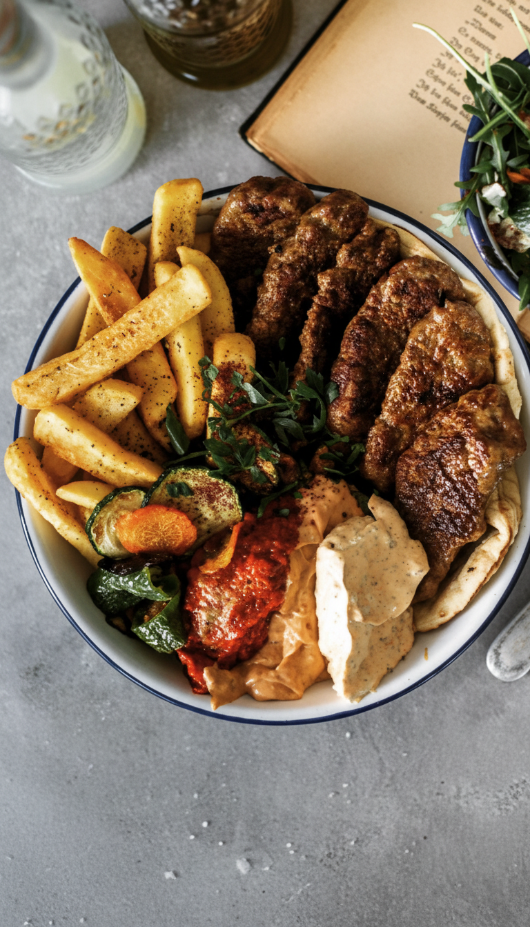 Tauche ein in die Vielfalt orientalischer Küche und teilst einen reichhaltigen Genussteller voll Köfte, Kebap, frischem Gemüse und aromatischen Saucen – perfekt für ein gemeinsames Erlebnis. Bei TÜRKITCH erwartet Dich authentischer Geschmack, hochwertige Zutaten und eine Atmosphäre, in der Essen nicht nur Nahrung ist, sondern Freude macht. Mit dieser Sharing Plate erlebst Du kulinarische Kombinationen, die ideal zum Entdecken und Genießen sind.
